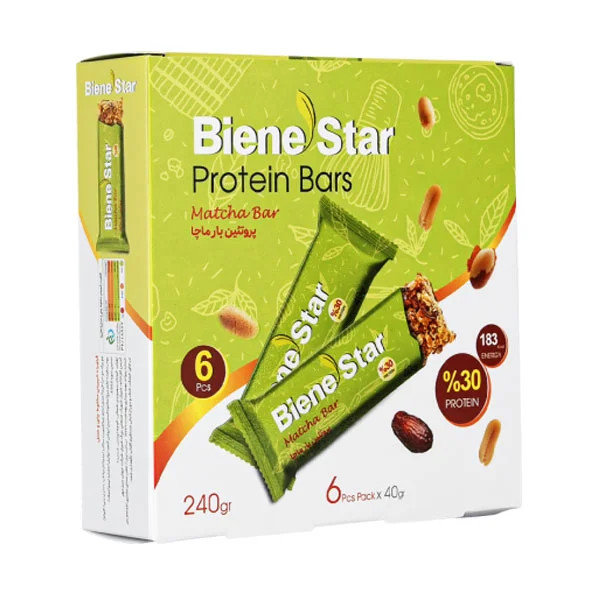 پروتئین بار ماچا بین استار تشکیل شده از طیف وسیعی از مواد مغذی و مغزهای خوراکی است که در یک محصول فرموله شدهاند. این ترکیبات شامل :