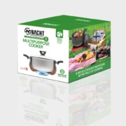 مزایای این سرویس غذاپز: اختراعی بی نظیر شامل مجموعه کاملی از کارایی های تمامی دستگاه ها وظروف پخت وپز آشپزخانه دریک ظرف صرفه جویی درمصرف سوخت تا پنجاه درصد صرفه جویی در زمان پخت وپزتا 20درصد برابری حرارت داخل محفظه تنوری با تنورهای سنتی حفظ ارزش مواد غذایی بعلت نداشتن هیچگونه فشار(برخلاف زودپز) پخش یکنواخت حرارت از طریق محفظه تنوری به تمامی سطوح غذا مغز پخت شدن و پخت لذیذتر غذاها به دلیل قرار گرفتن ظرف در محفظه تنوری جلوگیری از خاموش شدن شعله دراثر سرریز غذا به دلیل نوع طراحی مهندسی ظروف قابل شستشو بودن تمامی قطعات هاردآنادایز دستگاه با سیم ظرفشوئی به جز داخل قابلمه و ماهیتابه کاربرد آسان تر و طبخ سریع تر درعین حال خودرنگ و زیبا،سبک ،کم مصرف ،کم حجم ،مقاوم، با کیفیت و بادوام باصرفه اقتصادی به دلیل بی نیاز شدن از سایر ظروف پخت و پز جا گیر وپرهزینه این دستگاه استثنایی علاوه برداخل خانه در بیرون از خانه ،(سفرهای کوتاه و طولانی،دراماکن تفریحی و سیاحتی،مناطق کوهستانی و...) به دلیل کاهش مصرف انرژی،جلوگیری از هدر رفتن سوخت ،ذخیره کردن حرارت درداخل محفظه و پخت سریع تراز انواع غذاها،کاربرد فراوان دارد. ربردهای غذاپز همه کاره 8 نفره ناخ: پلوپز بخارپز کباب پز کیک پز خوارک پز سرخ کن گریل کن تنوری
