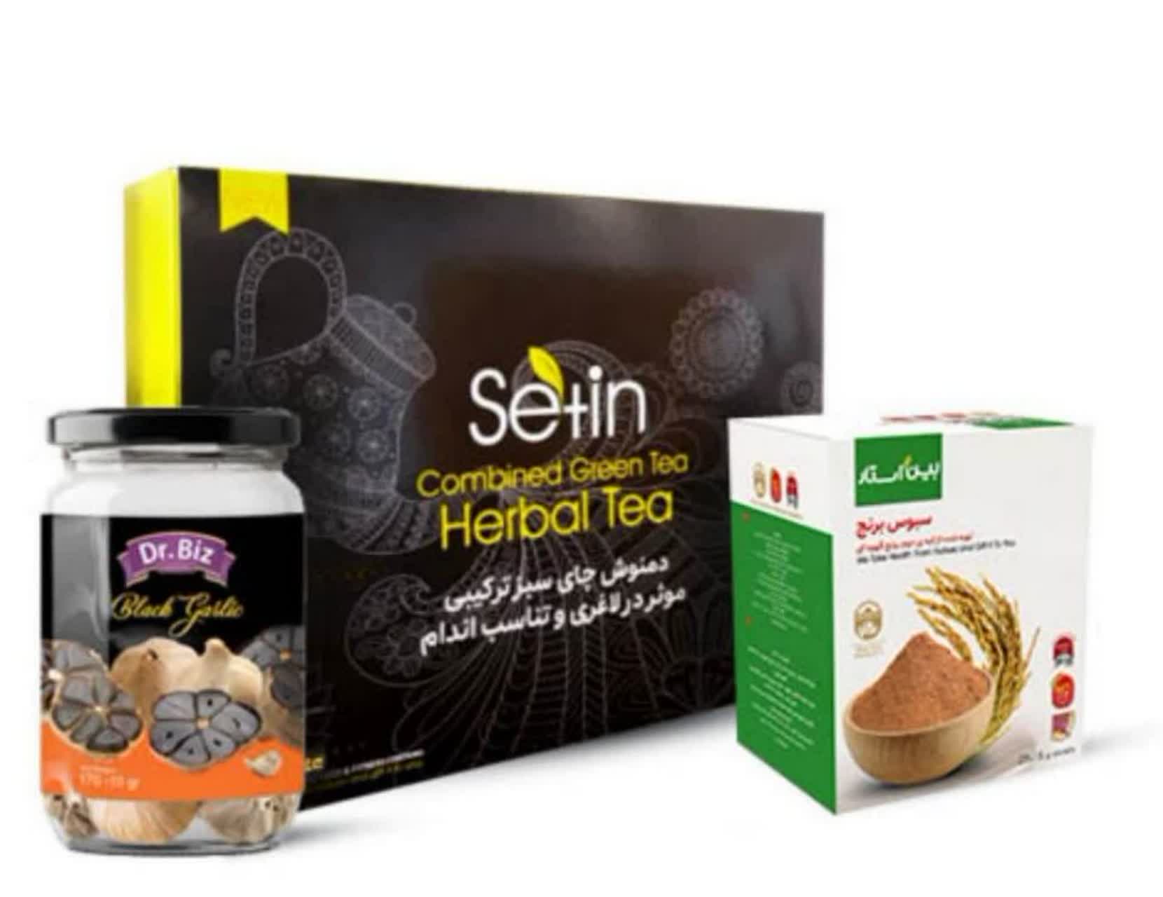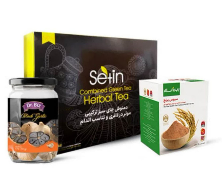 شامل دمنوش چای ترکیبی موثر در کاهش وزن+سیر سیاه تخمیر شده+سبوس برنج