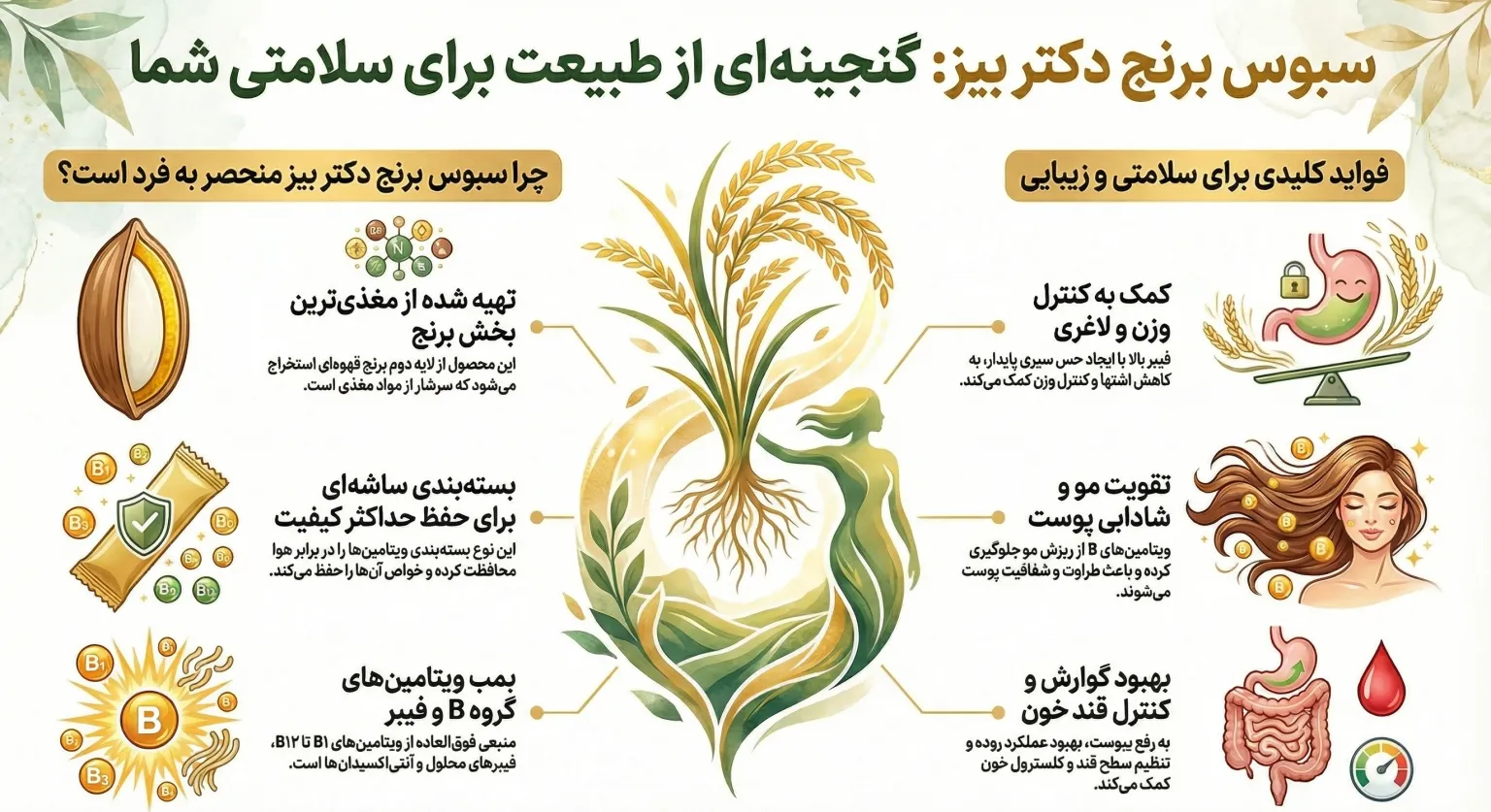 راهنمای کامل مصرف سبوس برنج قهوهای دکتر بیز